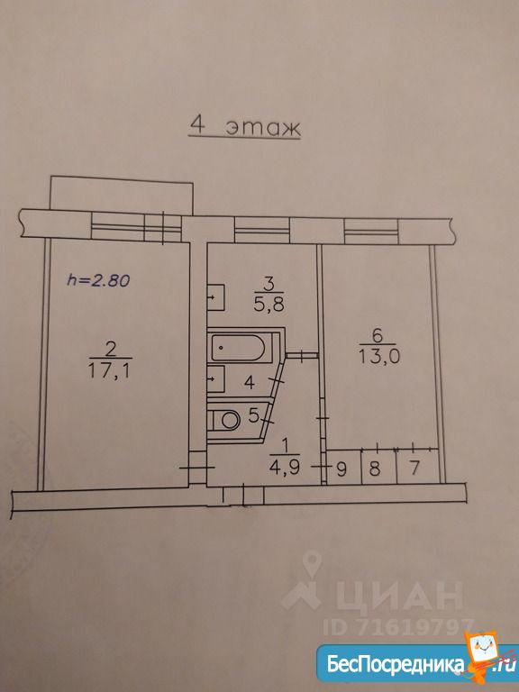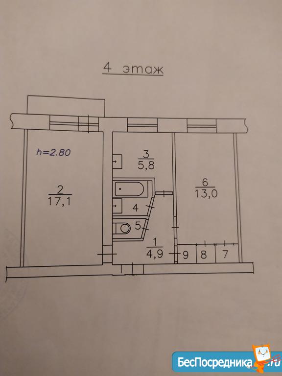 В квартире комнаты раздельные, санузел совмещённый. Есть застеклённый балкон.