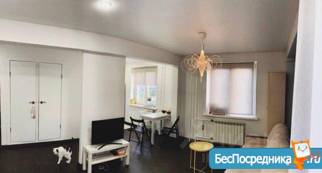 Собственник. Косметический ремонт, чистая, новые обои, очень тёплая, 2 этаж, что очень удобно, можно со своей мебелью, есть двуспальная кровать, можно убрать, по желанию.. Остановка, супермаркеты, школа, очень близко.