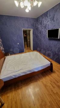 Квартира с качественным евро ремонтом, изолированные комнаты обеспечивают комфорт и приватность. Просторная кухня оснащена всей необходимой техникой, включая холодильник и микроволновую печь. В гостиной установлен большой телевизор и удобный диван, а также обеденная зона с современным столом и стульями.