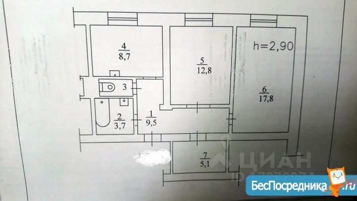 Квартира индивидуальной планировки. По документам 2-хкомнатная.