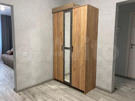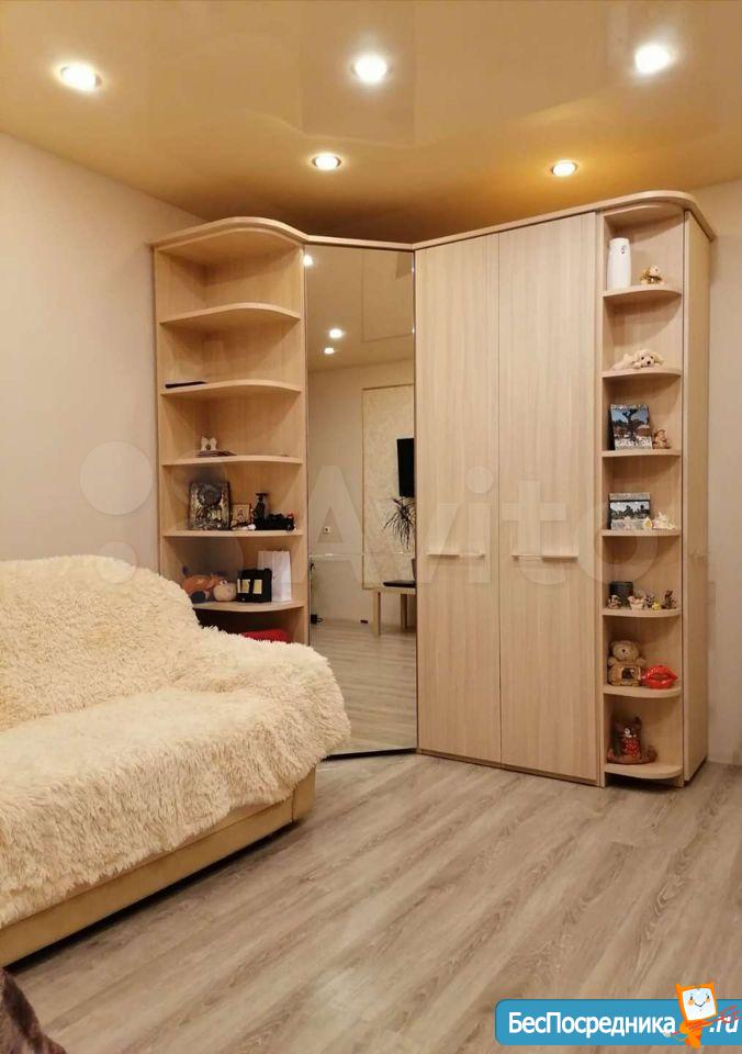 Полностью мебелирована и оборудована необходимой бытовой техникой. В комнате имеется: шкаф, диван угловой, горка, телевизор. На кухне: кухонный гарнитур, холодильник, электрическая плита, стол. Есть стиральная машина.