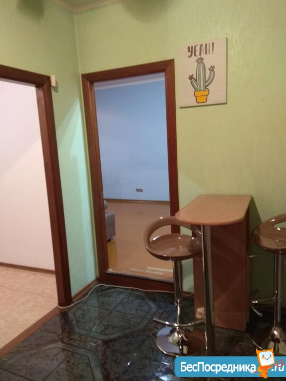 Квартира уютная, теплая, светлая. В квартире косметический ремонт. Из мебели: кухонный гарнитур; встроенный шкаф; диван; барная стойка со стульями; банкетка. Из техники холодильник, плита, стиральная машина.