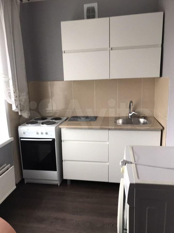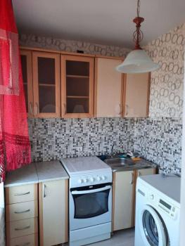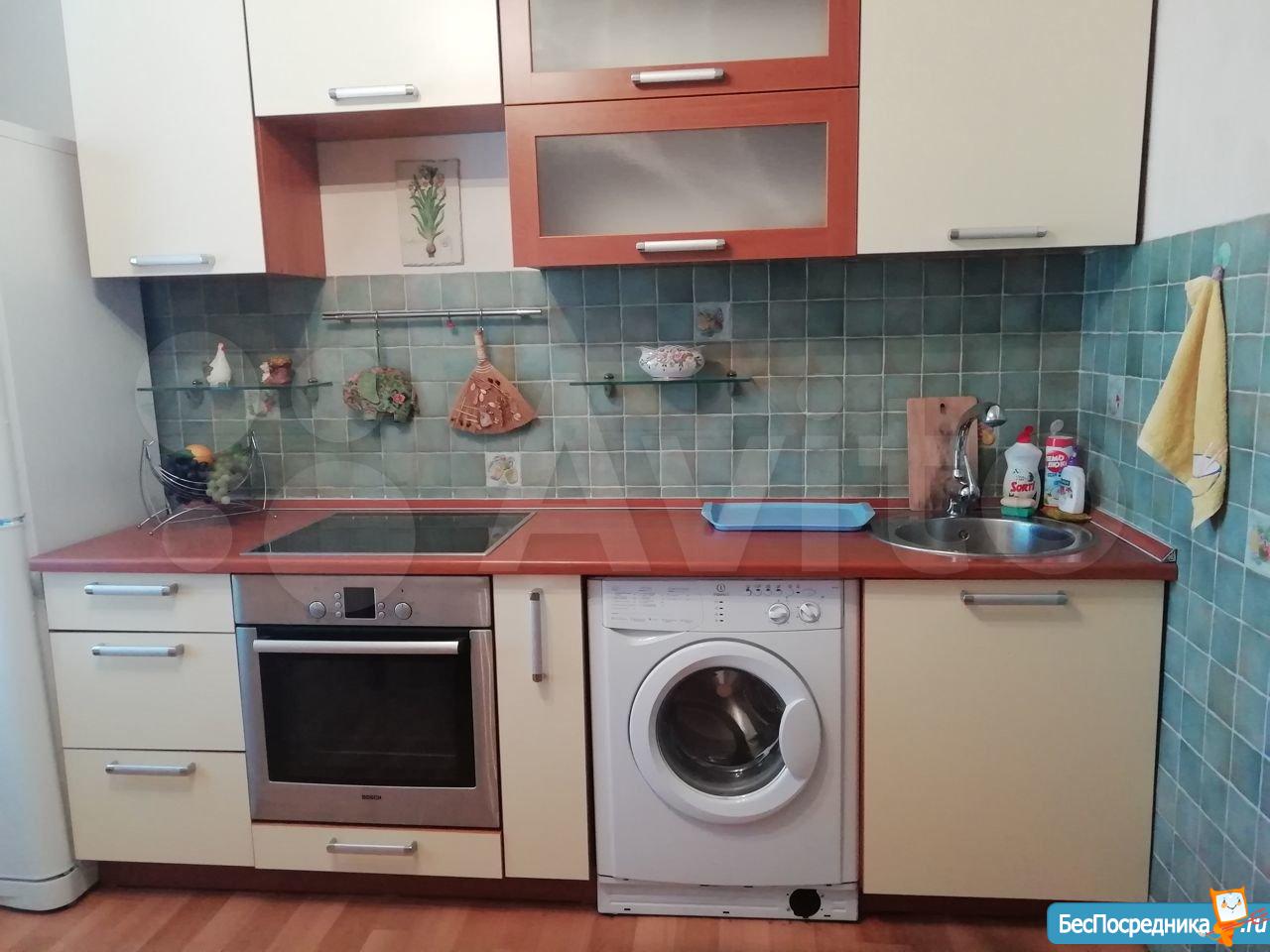 В квартире находится электроплита, холодильник, стиральная машинка, мебель на кухне и в комнате, есть встроенный шкаф.