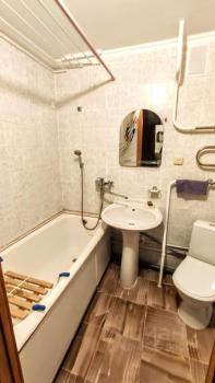 Сдаётся 1-комнатная квартира в 9-этажном, кирпичном доме. Окна ПВХ. Не у главной дороги. Тихий двор. Очень тёплая. Большая кухня 9,7 м?;. Жилая комната 17,9 м?;. Санузел раздельный. Есть мебель, холодильник, микроволновая печь, чайник. Инфраструктура развита. Рядом две школы, детские сады, сбербанк, магазины, остановки в шаговой доступности. Оплата 15000р.+счётчики.