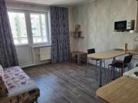 Сдается уютная, теплая квартира-студия (30кв.м.) на длительный срок (от 9 месяцев) аккуратным и ответственным арендаторам без животных. Большой застекленный балкон с сушилкой д/белья, сан.узел в кафеле. Есть вся необходимая мебель: в прихожей вместительный шкаф купе - входит всё и даже больше; встроенный кухонный гарнитур, диван-книжка, журнальный столик, стулья, табуреты.