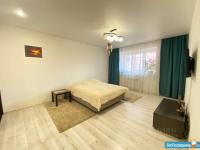Идeальный отдыx: B гостиной вас ждет двуспальная кровать и кондиционер, а на лоджии — целая зона отдыха с диваном и столиком, откуда открывается вид на озеро-парк «Октябрьский».