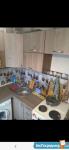 Диван, шкаф, стенка с телевизором, эл.плита, микроволновка, духовка, холодильник, стиральная машинка. Квартира находится в удобном, проходном месте. Рядом рынок, магазины, автобусные остановки, садик, школа. Можно с животными, но небольшими.