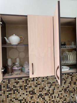 Полностью укомплектована кухня( новый гарнитур, плита, стол, стулья, холодильник, под окном холодный шкафчик.