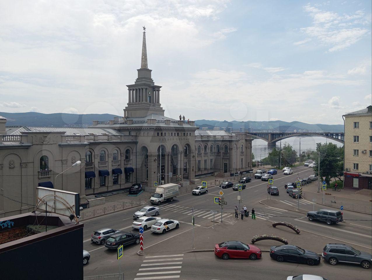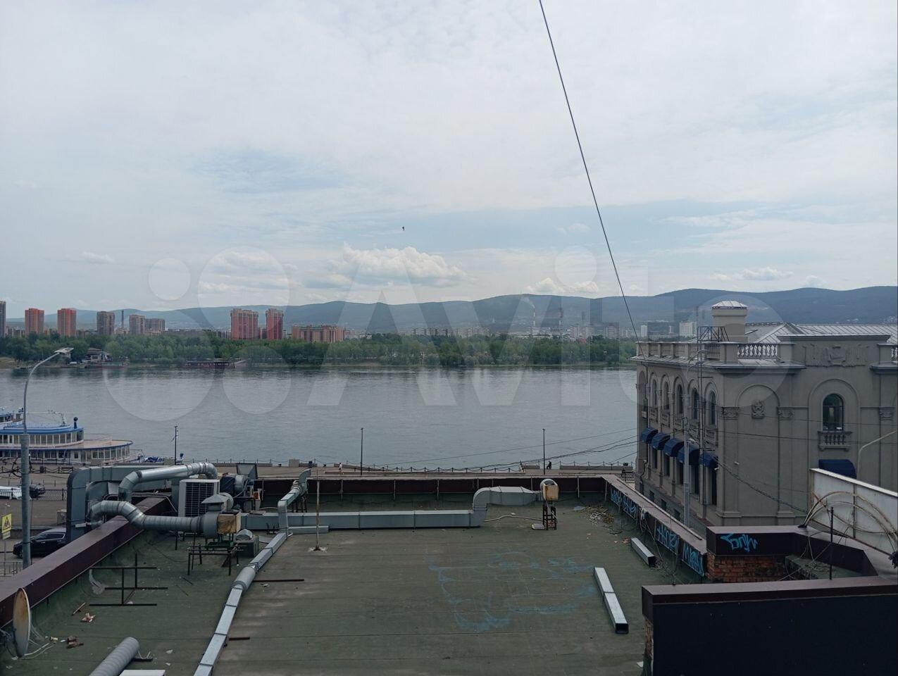 Окна выходят на набережную р.Енисей.