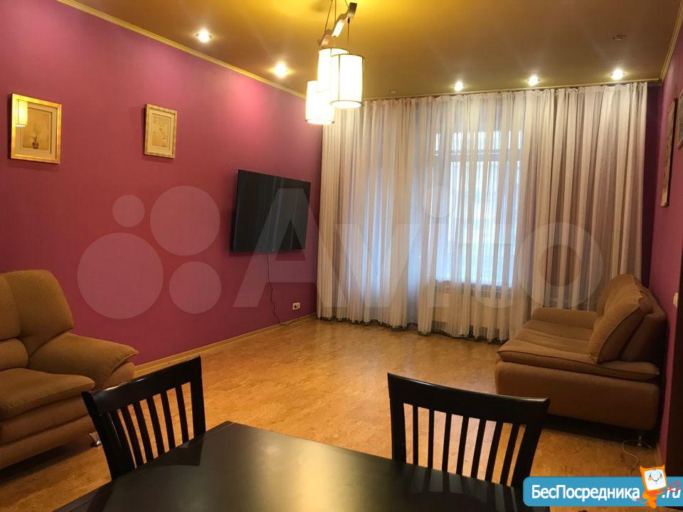 Сдаётся трёхкомнатная крупногабаритная квартира 100 квадратов с большими лоджиями. Светлая, окна на две стороны, уютная с качественной мебелью.