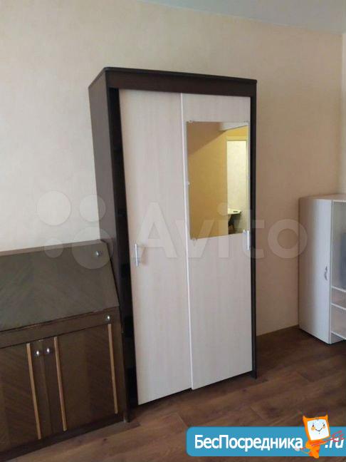 Из мебели: кухонный гарнитур, вытяжка (не подведена к вентиляции), большой шкаф Стенли с гердеробом, диван раскладной в большой комнате, диван на балконе (старый, если не нужен, то можете его даже выкинуть). Посуда есть вся от тарелок до сковородок.
