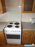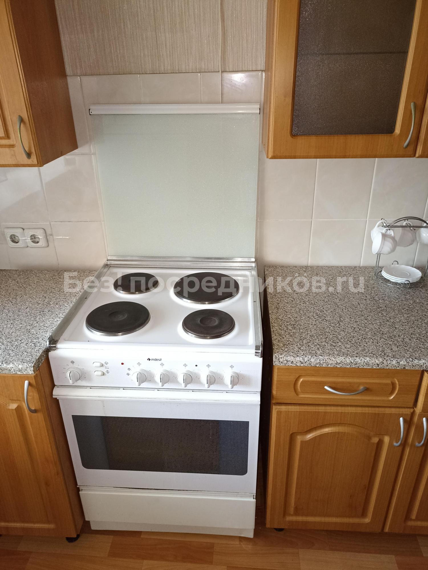 Холодильник, стиральная машина, плита с духовкой, микроволновая печь, диван раскладной, шкаф, утюг, гладильная доска, стулья, гардеробная мебель.