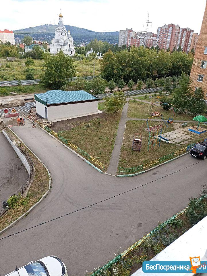 Во дворе есть детская площадка, окна выходят на церковь и зелёную зону?