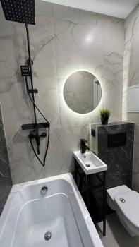 Дом монолитно-кирпичный. В квартире сделан капитальный ремонт с современным дизайном. Была произведена полная замена электропроводки. Ванная комната выполнена в широкоформатном кафеле, установлены инсталляция и смеситель с тропическим душем. Имеется балкон с новым остеклением. Вся мебель и техника новые! Никто до ремонта не проживал! ☝