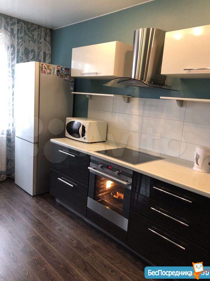 На кухне: гарнитур,духовой шкаф, стеклокерамическая плита с таймером, холодильник, микроволновая печь, чайник, телевизор.