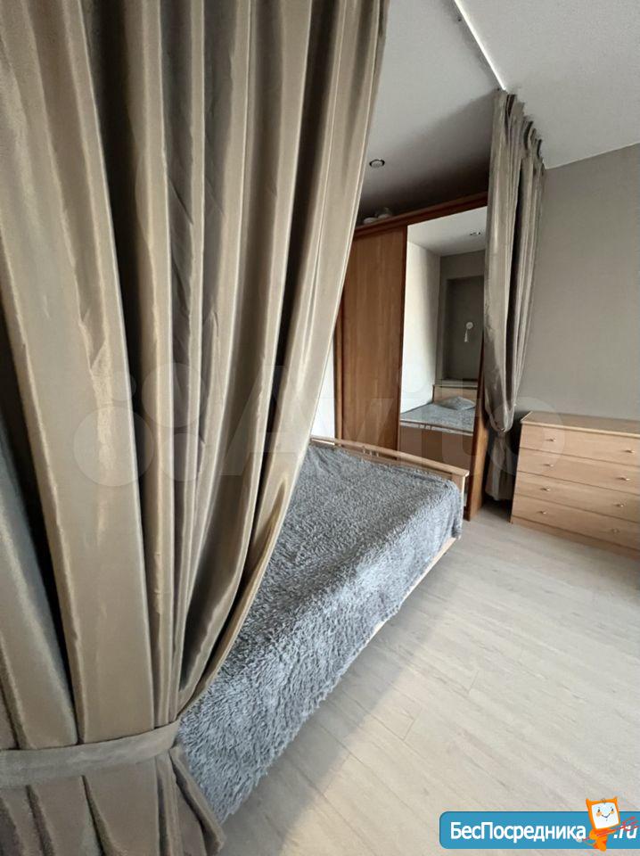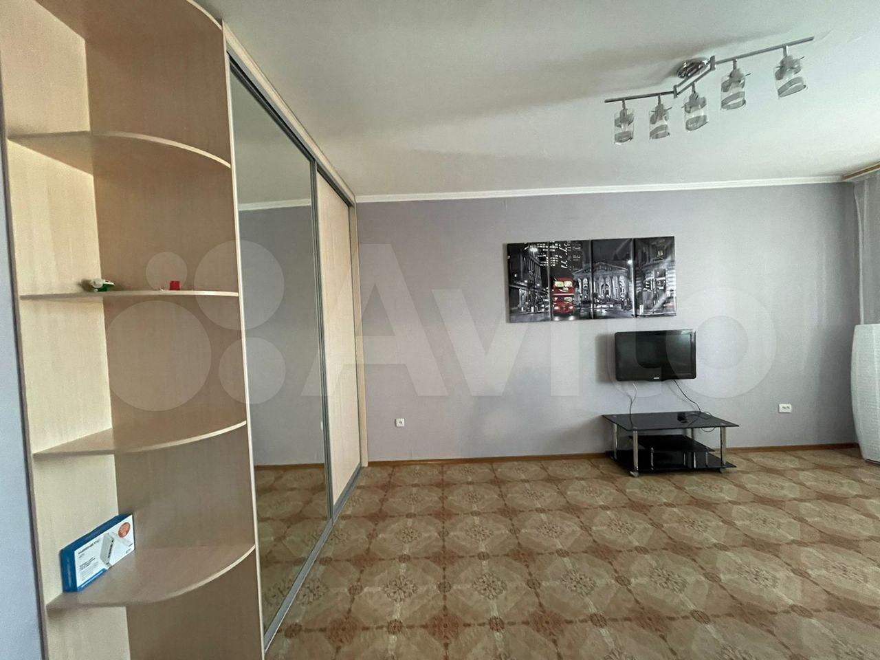 Чистая уютная квартира, двор закрытый видеонаблюдение, солнечная сторона, Для проживания одному-двух человек все необходимое есть.Комната: двуспальная кровать, телевизор, кресло, комод под белье, тумбочка. Кухня: кух.горнитур,холодильник,стол,стулья, посуда. Санузел: кафель, машинка автомат. Гардеробная: утюг, гладилбная доска. БЕЗ детей, животных. ТРК Планета 8 мин. пешком.