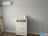 В квартире есть всё необходимое для проживания. В спальне-двуспальная кровать с ящиками (6шт), комод, стойка с вешалками, зеркало с лампами, барный стул, сушилка, гладильная доска и кондиционер.