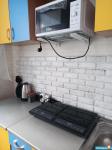 Кухня - кухонный гарнитур, обеденная группа (стол, стулья), холодильник, эл. плитка (без духовки), микроволновка, стиральная машинка.