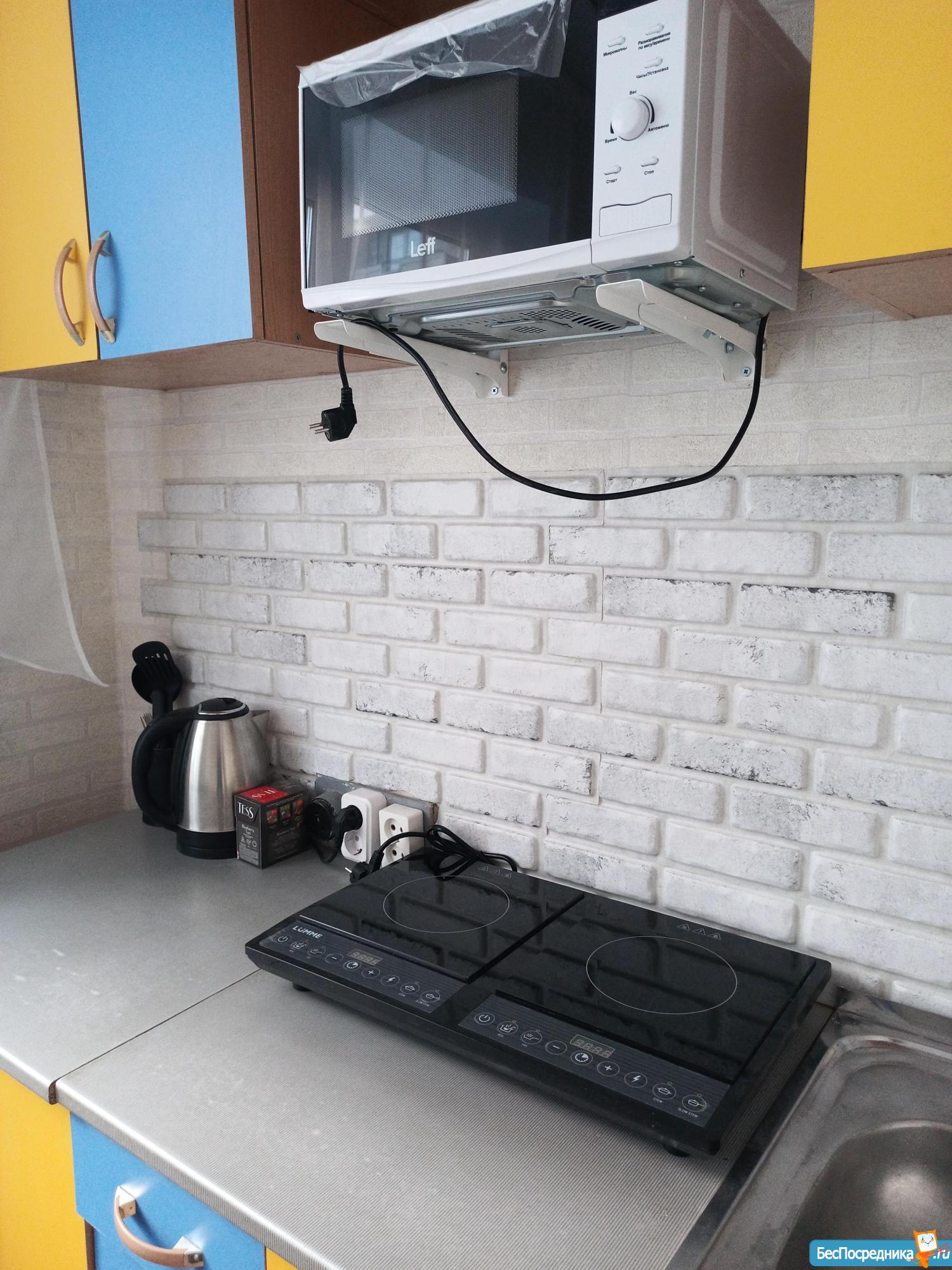 все для комфортного проживания: мебель, бытовая техника (печь, стиральная машина, микроволновка, холодильник, телевизор, чайник, утюг), посуда, подушки, одеяло.