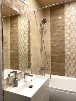 Квартира полностью меблирована и оборудована всей необходимой техникой: холодильник, телевизор и стиральная машина. В комнате и на кухне уже есть мебель, поэтому можно сразу заезжать и жить. Ванная комната оборудована ванной, что создаёт дополнительные возможности для комфортного отдыха.