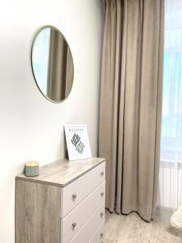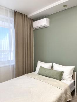 Здравствуйте! Предлагаю вашему вниманию уютную двухкомнатную квартиру. В прихожей установлен большой встроенный шкаф, влезет всё и даже больше. На входе есть зеркала, можно красоваться в полный рост, удобно. Комната в нежных спальных тонах, в ней новая кровать с ортопедическим основанием и вместительный шкаф. В зале имеем двуспальный диван и что немаловажно установлен кондиционер. Кухня! в ней есть всё для приготовления вкусняшек, плита, духовой шкаф, холодильник, микроволновая печь и незаменимая посудомоечная машина! так же очень красивый вид, а это 17 этаж. Закаты будут вас радовать! В ванной комнате стиральная машина, тумба с раковиной и большое зеркало! В туалете просто туалет) Возле дома есть все магазины, рядом лента. остановка в двух шагах.