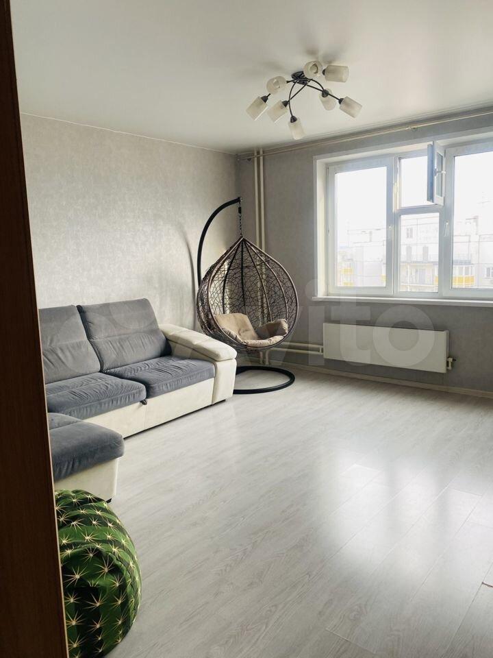 Квартира с косметическим ремонтом, светлая и просторная. Жилая площадь составляет 25 м², кухня — 9 м². В квартире есть необходимая бытовая техника: холодильник, стиральная машина и плита. Из мебели — шкафы и диван.