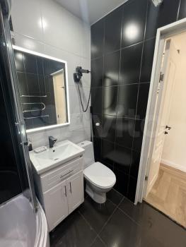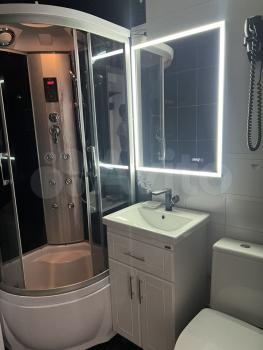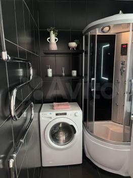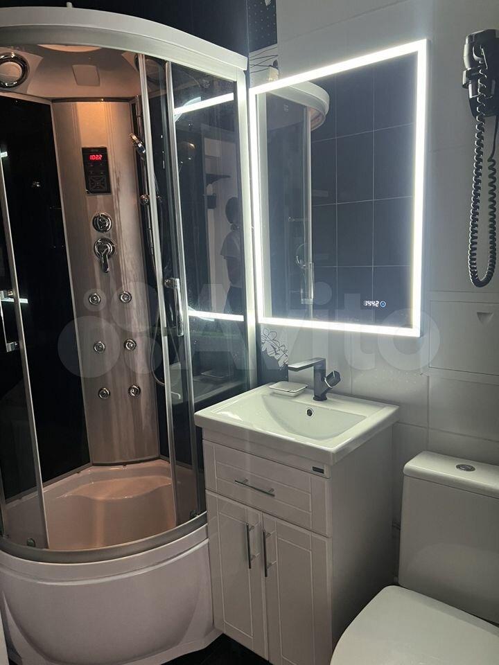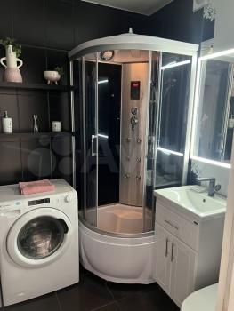 В ванной установлено зеркало с подсветкой, душевая кабина с подсветкой и радио. Стиральная машина с функцией сушки. Встроенный фен.