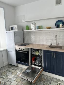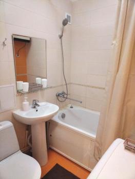 Квартира очень светлая и уютная. Есть кондиционер, Жк-телевизор., 1 двуспальная кровать, 1 диван-кровать, шкаф, комод, стеллаж. Кухня оснащена всей необходимой техникой (плита, микроволновка, чайник, холодильник), есть посуда. В ванной стиральная машинка, водонагреватель (для ванной и кухни). А также утюг, гладильная доска, сушилка для белья.