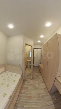 Комната укомплектована мебелью: кровать с матрасом 200*80, стол, шкаф с вешалкой и полочками, тумба и вешалка для верхней одежды.