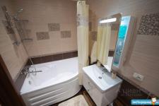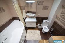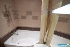 Совмещенный санузел: Итальянская сантехника, большая акриловая ванна, бесшумная арматура унитаза, вытяжная система Electrolux, шкафчик с зеркалом и подсветкой, итальянская стиральная машина Indesit, точечное освещение.