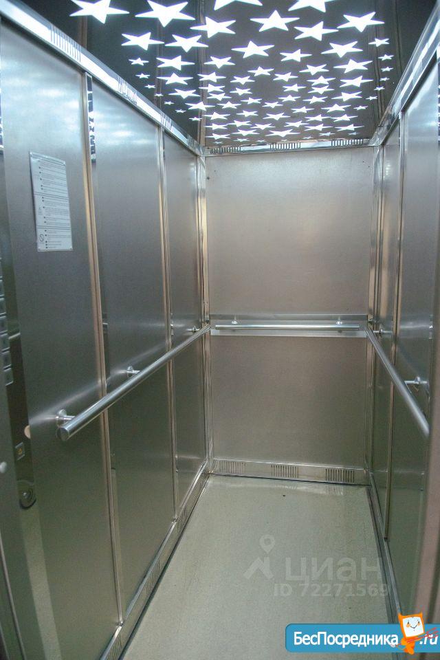 В подъезде 2 красивых лифта: грузовой и маленький пассажирский.