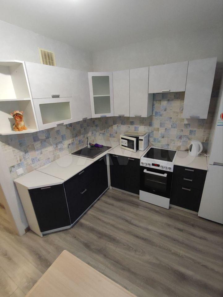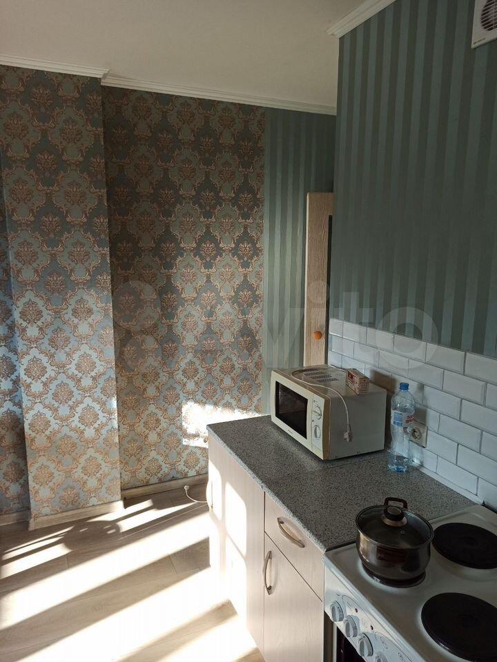 Сдается уютная однокомнатная квартира с евроремонтом в современном монолитно-кирпичном доме на 12-м этаже. Общая площадь квартиры составляет 33,5 кв. м, кухня — 9 кв. м. Дом был построен в 2019 году и оборудован пассажирским и грузовым лифтами.