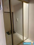 В подъезде один грузовой просторный лифт с зеркалом.