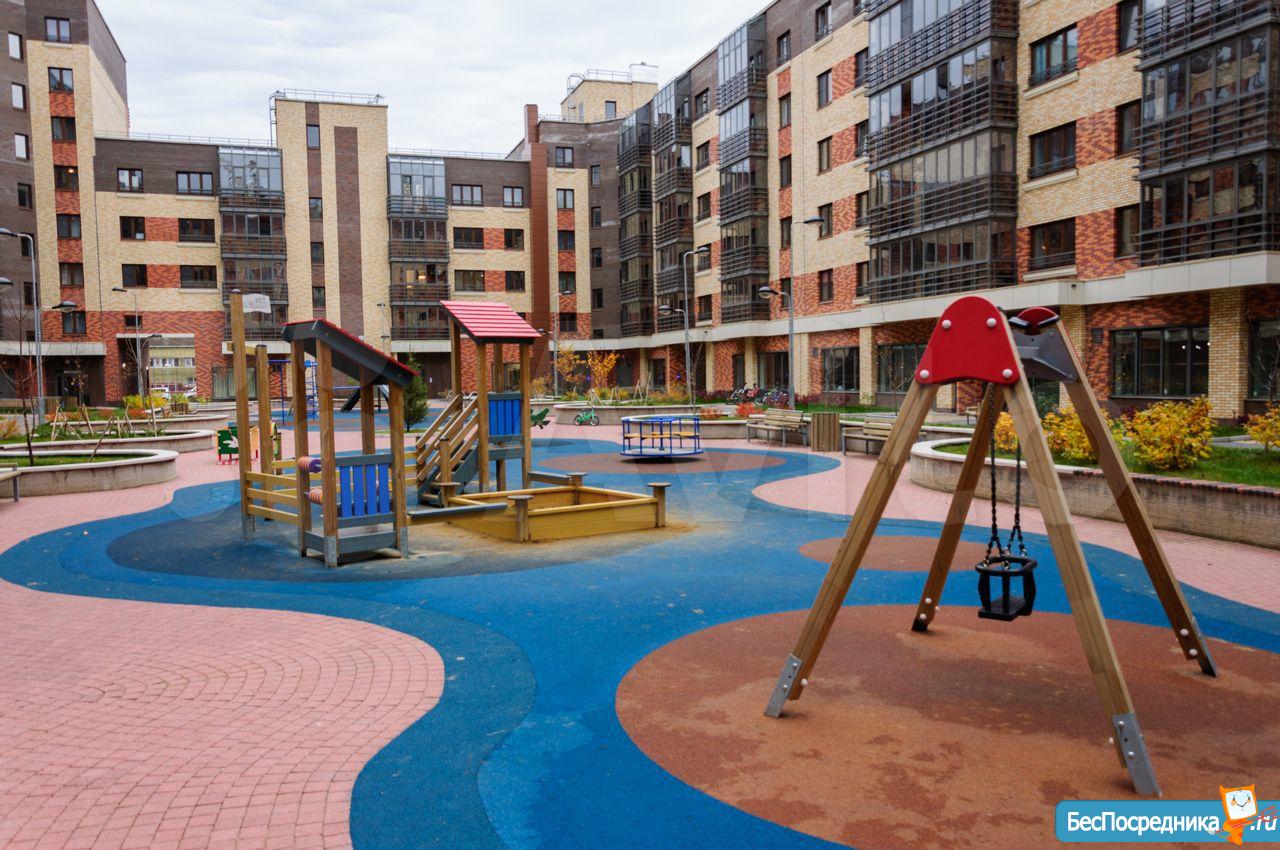 Полностью закрытый двор с просторной игровой площадкой.