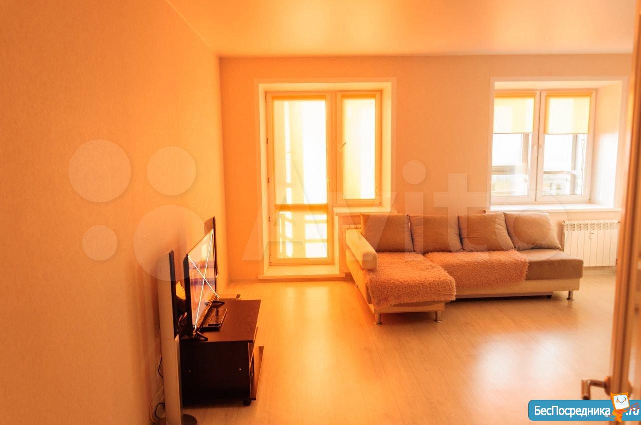 Сдам двухкомнатную студию площадью 62 кв.м. практичной планировки на 6м этаже в новом кирпичном доме микрорайона "Южный Берег" . На длительный срок. Окна и балкон в сторону бульвара Экзюпери.