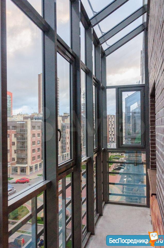 Просторный застекленный балкон.