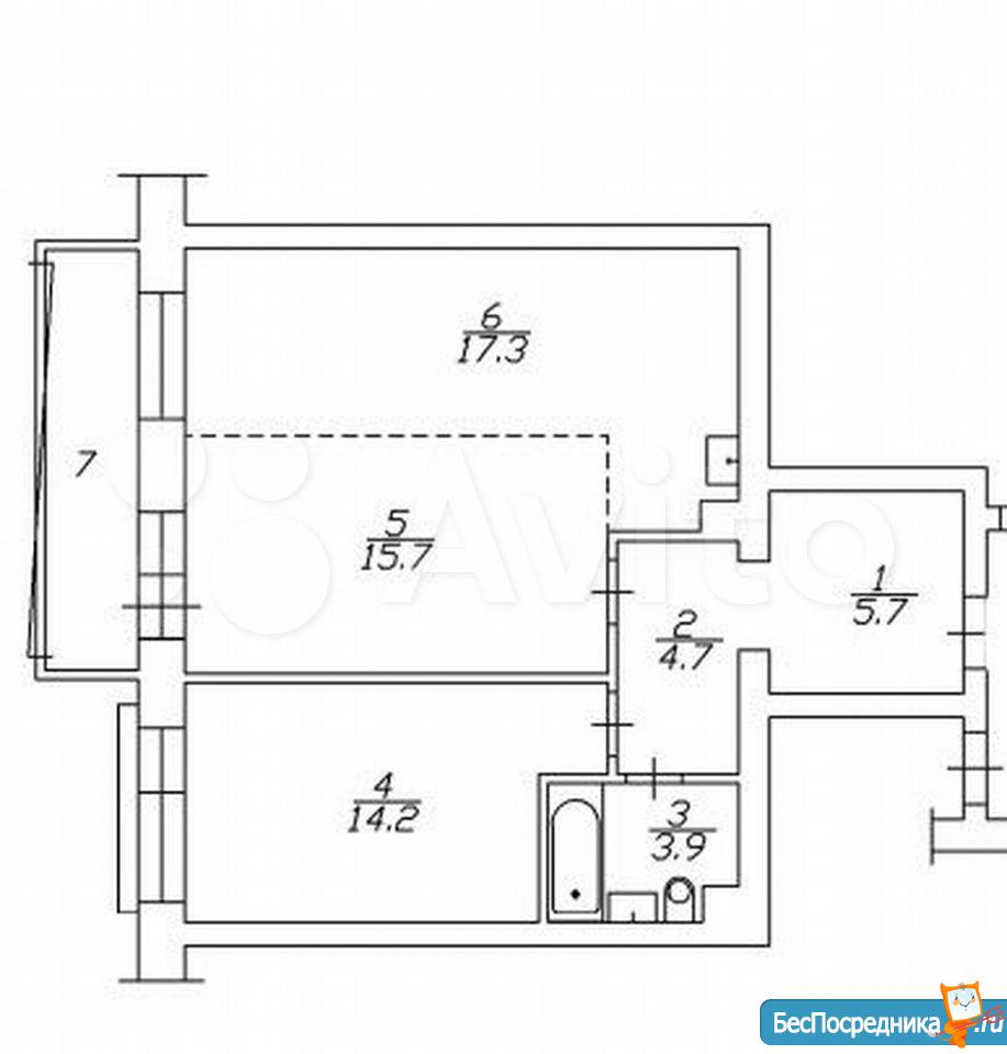 2 комнатная (распашонка), без мебели, ремонт от застройщика, сдается с апреля 2023 г., на длительный срок