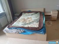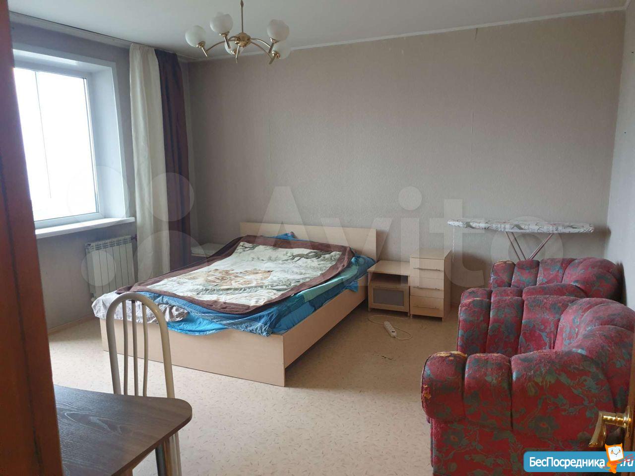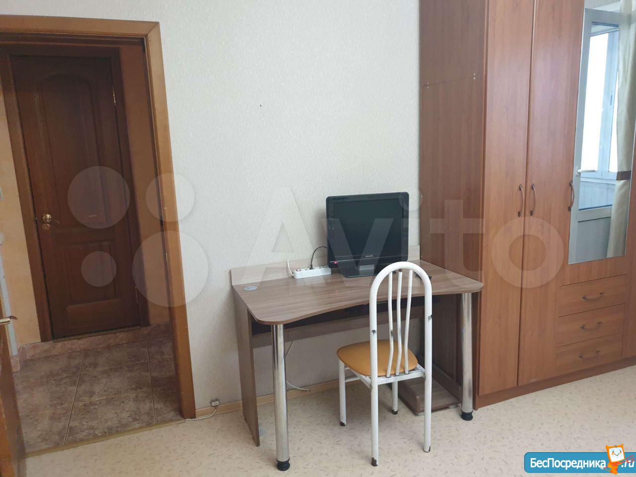 МЕБЕЛЬ и ТЕХНИКА (есть всё): кухонный гарнитур, большой холодильник LG (Total No Frost), микроволновка, стиральная машина (автомат), электрочайник, большой ЖК телевизор, встроенный шкаф, сервант, 2 новых дивана (один кожаный), стеклянный журнальный столик, шкаф-стойка, гладильная доска, утюг, посуда.