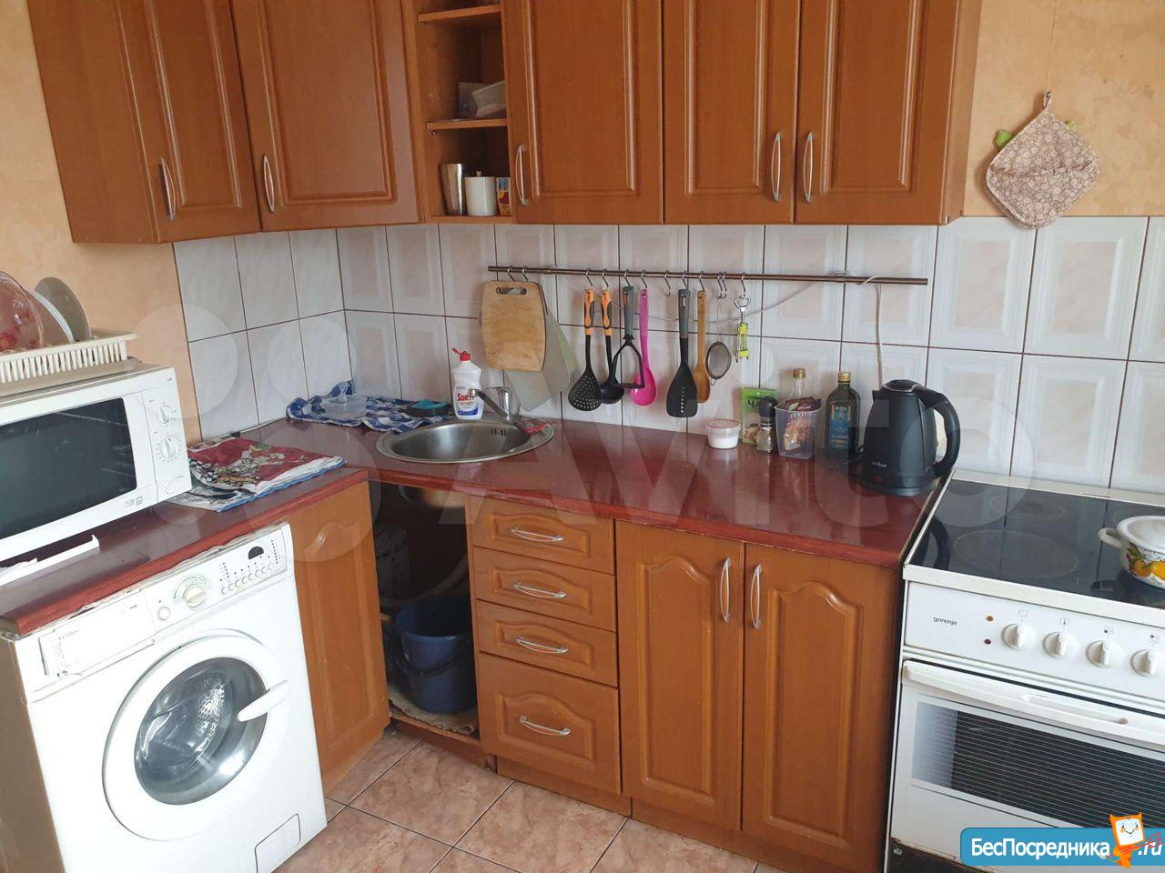 МЕБЕЛЬ и ТЕХНИКА (есть всё): кухонный гарнитур, большой холодильник LG (Total No Frost), микроволновка, стиральная машина (автомат), электрочайник, большой ЖК телевизор, сервант, 2 новых дивана (один кожаный), стеклянный журнальный столик, шкаф-стойка, гладильная доска, утюг, пылесос, посуда. Светодиодные люстры с пультом ДУ.