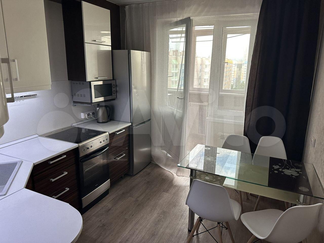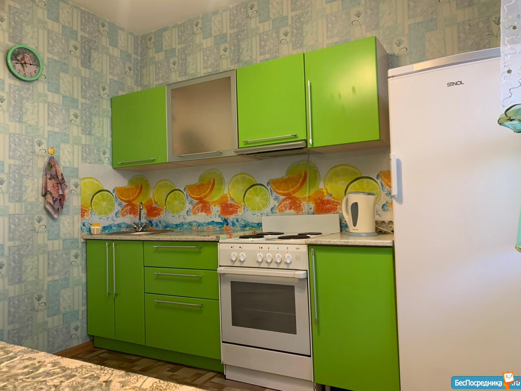1 комнатная меблированная квартира (двуспальная кровать, диван, вместительный шкаф для вещей. Кухня со всей техникой и посудой (четырёхкомфорочная электроплита с духовкой, холодильник, электрочайник, микроволновка), стиральная машина. Застекленный балкон, интернет, санузел раздельный.