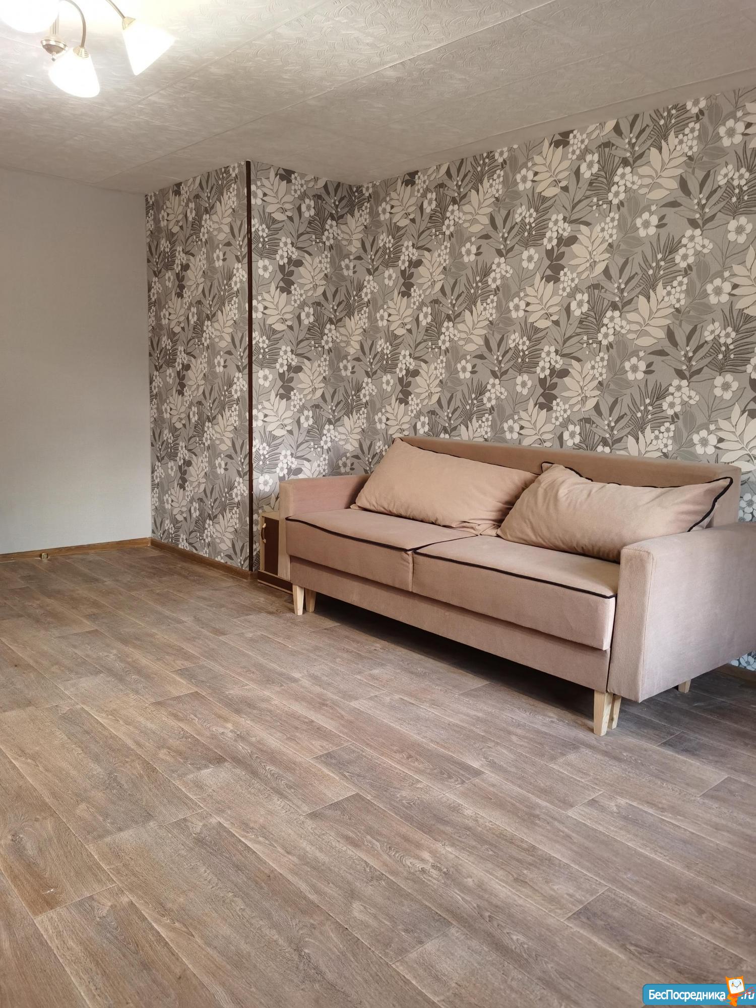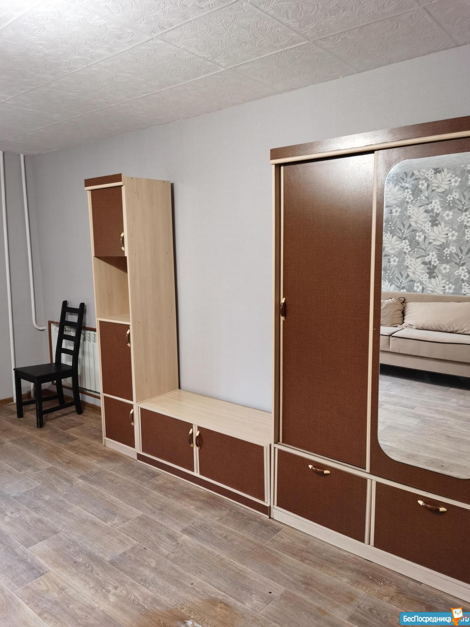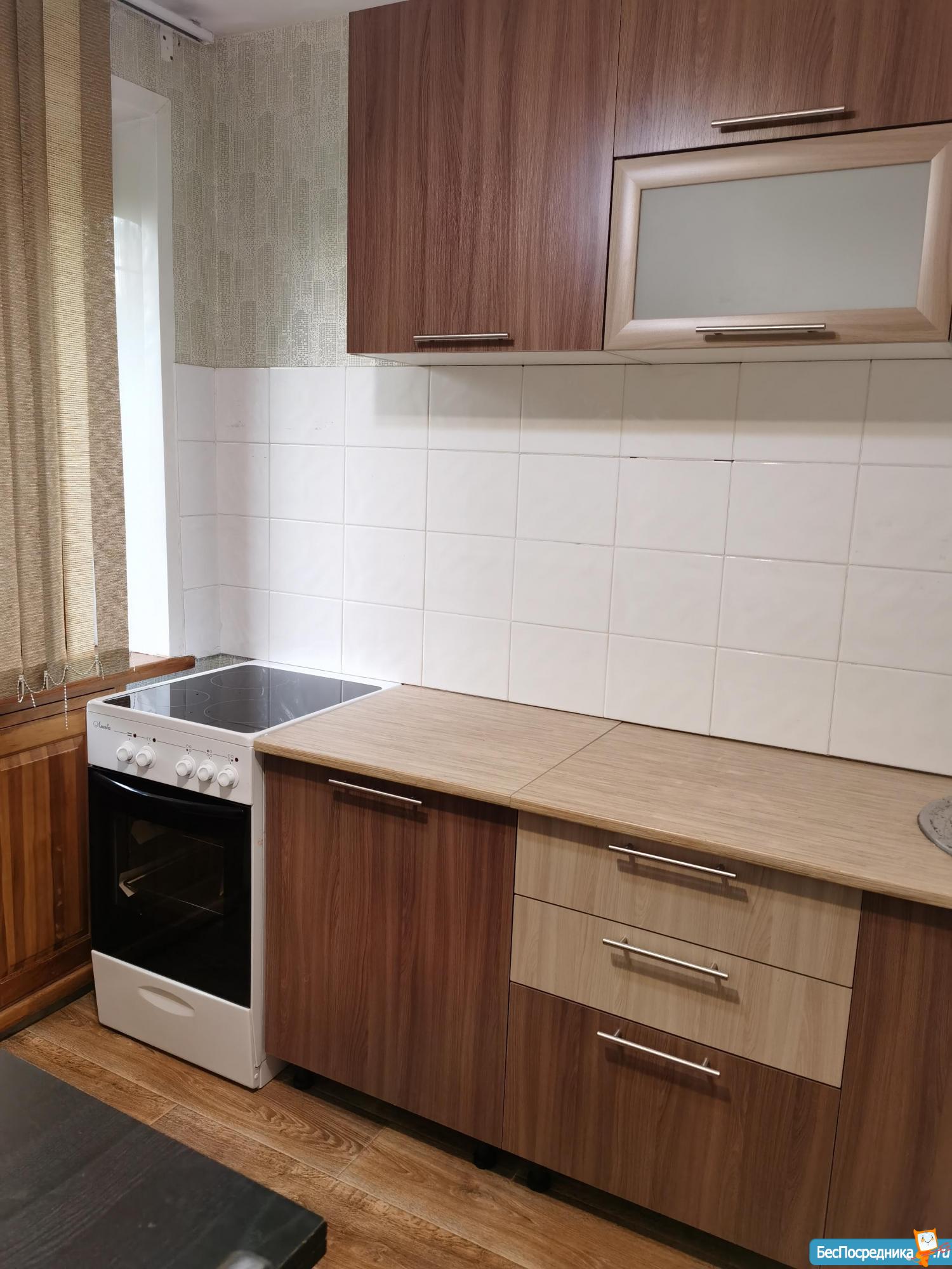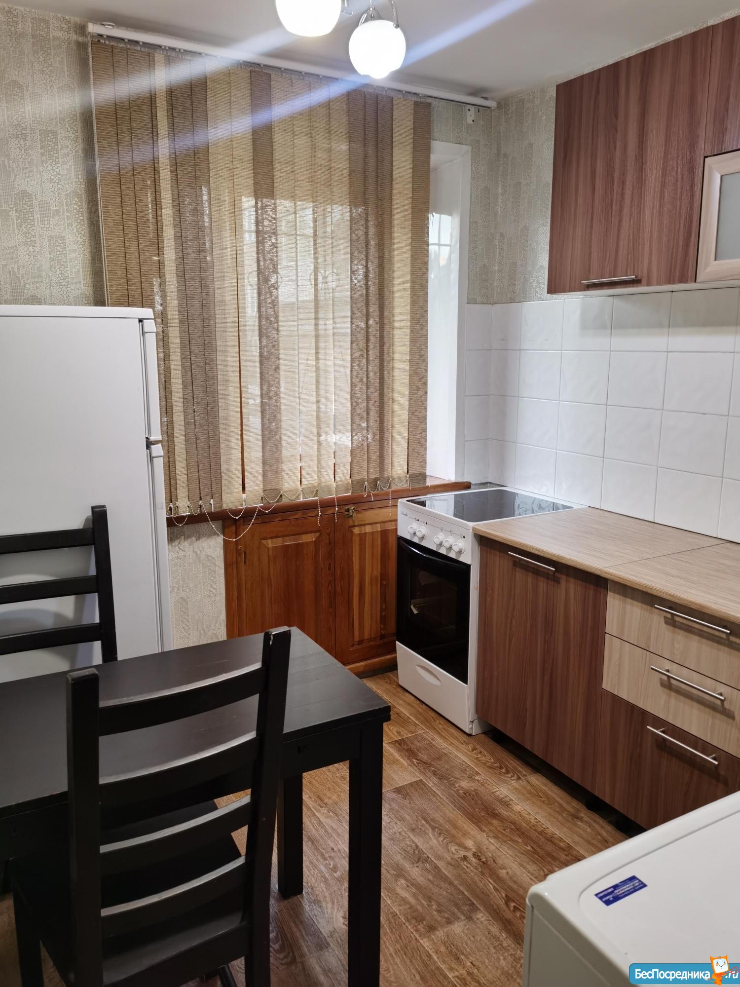 Квартира мебелирована: новый диван (никто не спал), стенка с платяным шкафом и зеркалом. На кухне раздвижной стол и 4 стула. Новый кухонный гарнитур, холодильник и стеклокерамическая электроплита. Стиральная машинка.