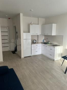В квартире сделан косметический ремонт, что создает приятную атмосферу. Планировка студии позволяет удобно организовать пространство. В комнате и на кухне есть вся необходимая мебель. Также в наличии холодильник и стиральная машина. Санузел совмещенный, оборудован ванной. Из окон открывается вид на улицу, а на балконе можно насладиться свежим воздухом.