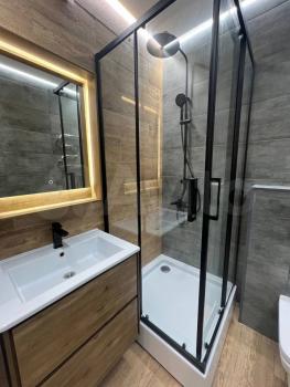 Телевизор и андройд приставка, хороший wifi роутер, стиральная машина, стеклокерамическая плита, духовой шкаф, микроволновка, холодильник, чайник, утюг, вытяжка, пылесос, набор посуды на 4 персоны, кастрюли и сковорода, платяной шкаф и большой шкаф в коридоре, душевая кабина, водонагреватель на 50 литров и многое другое.