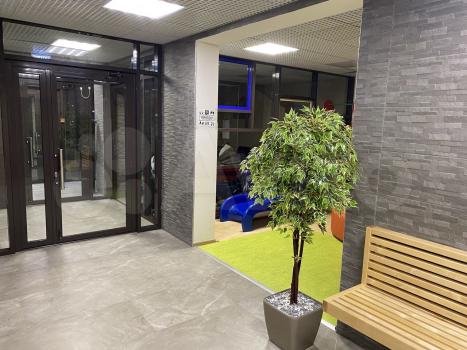 Современный подъезд с детской игровой зоной, зоной для хранения колясок и велосипедов, закрытый уютный двор со спортивными площадками