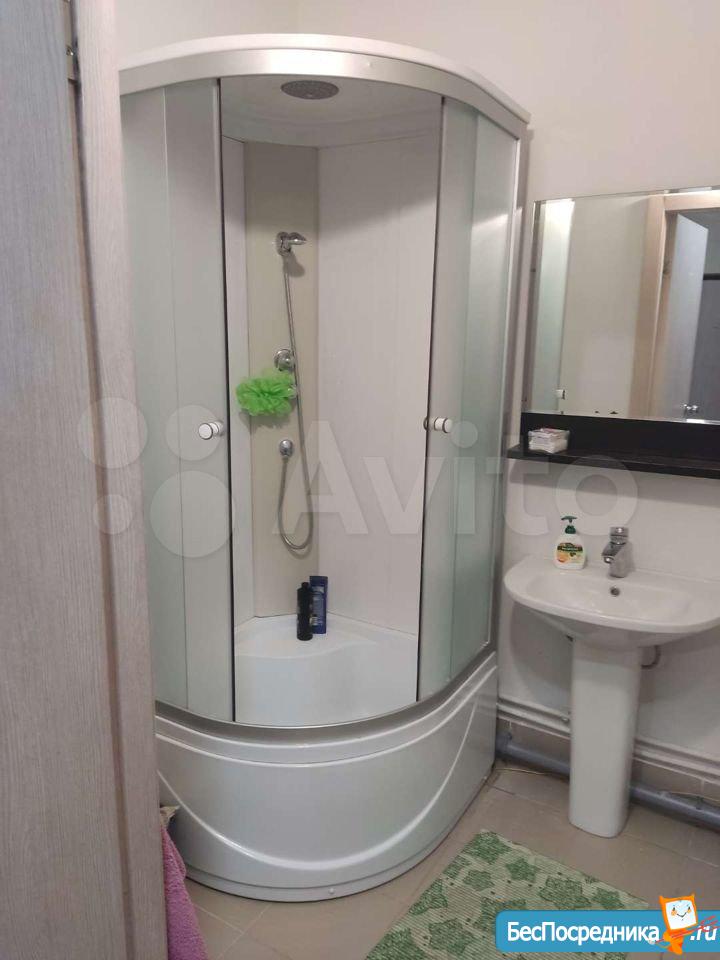 Мебель: новый кухонный гарнитур со стеклянным фартуком, прихожая с зеркалом, угловой шкаф в коридоре, зеркало в ванной. Остальная мебель и посуда по договоренности.