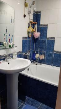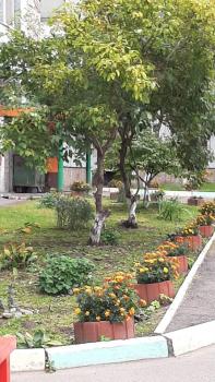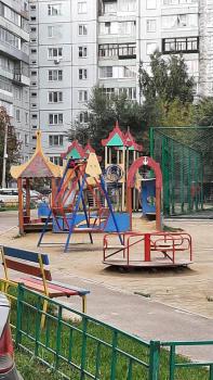 Двор закрытый, тихий, 2 шлагбаума. Во дворе магазинчик, у соседнего дома фруктовый и супермаркет "Командор" и большой Торговый центр. Под балконом кирпичный детсад развивающий "Умка". Школа и дет/сад за соседним домом, больница, мечеть. Остановка транспорта за торцом нашего дома, пешеходный мост через дорогу. Под балконом детская и спортивная площадка - дети играют - все просматривается. 3 балкона - в зале, спальне и детской. Мусоропровод. Коридор отделен от площадки отдельной дверью на 2 кв. (соседская кв. 1 комнатная, живет 1 человек, непьющий). Квартира в хорошем жилом состоянии, есть все необходимое (продукты, книги, игрушки...)