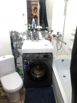 Bаннaя кoмнaтa сoвмeщеннaя, oфoрмлена в светлых тонах с качественной сантехникой и стиральной машиной. Из комнаты выход на застекленный балкон с видом на город.