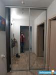 Сделана система хранения вещей в коридоре, много полок и шкафчиков. Большие зеркальные дверцы.