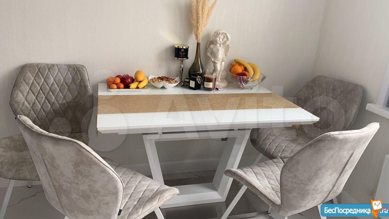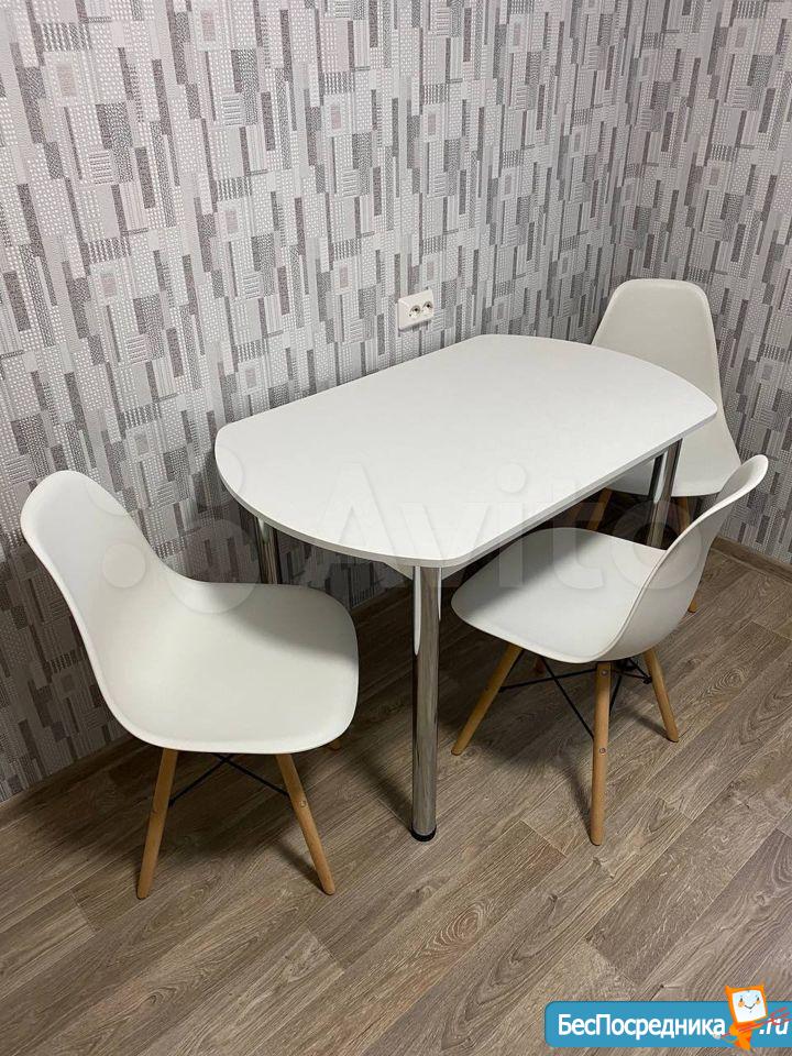На кухне гарнитур, большой холодильник, варочная панель, духовка, вытяжка, микроволновка, мультиварка. Остаётся вся посуда. Стол и диван, который можно разложить на 2 спальных места.