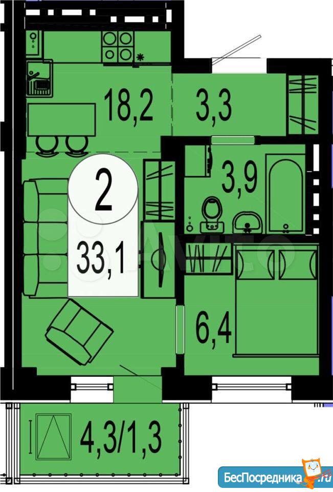31 м2, 18 этаж, красивый вид с балкона.